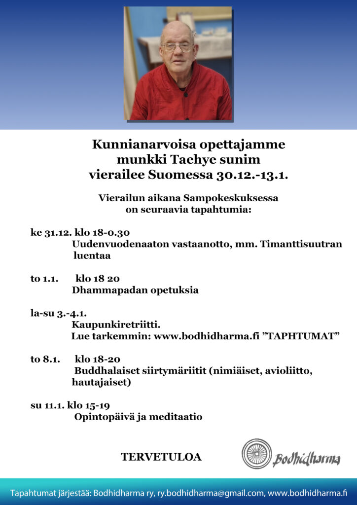 Taehye sunimin vierailu Suomessa vuodenvaihteessa
